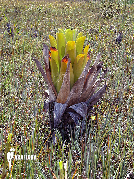 Deze vleesetende bromelia gebruikt een iets andere strategie. Ze komt voor in vergelijkbare omgevingen en produceert een sterke, honingachtige geur die insecten naar de val lokt. Net als Brocchinia vormt ze een gladde, met water gevulde structuur waarin de prooi verdrinkt en wordt afgebroken.