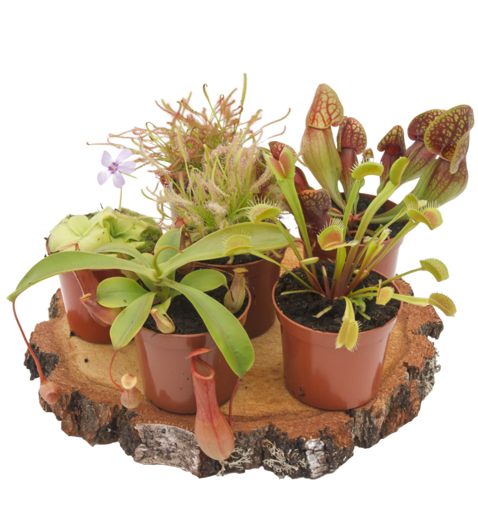 Profiteer van onze pakketten met vleesetende planten! Een mix van soorten zoals Venus vliegenval, Zonnedauw en Bekerplant – meer variatie voor minder geld.